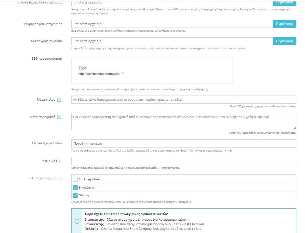 7. Επιλέγουμε για ποιες ομάδες πελατών θα είναι διαθέσιμη αυτή η κατηγορία