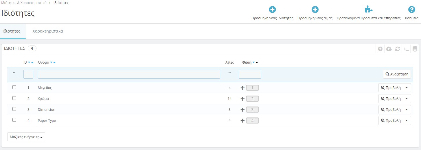 Προβολή πατάμε για να δούμε τις αξίες που έχει η κάθε ιδιότητα.