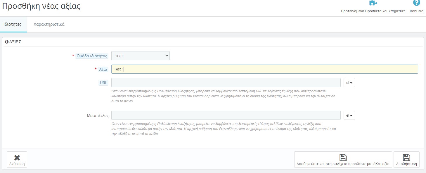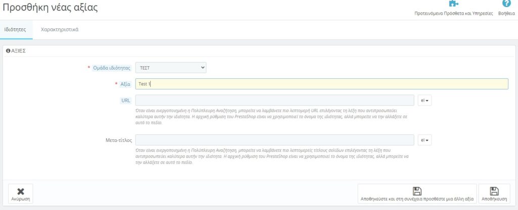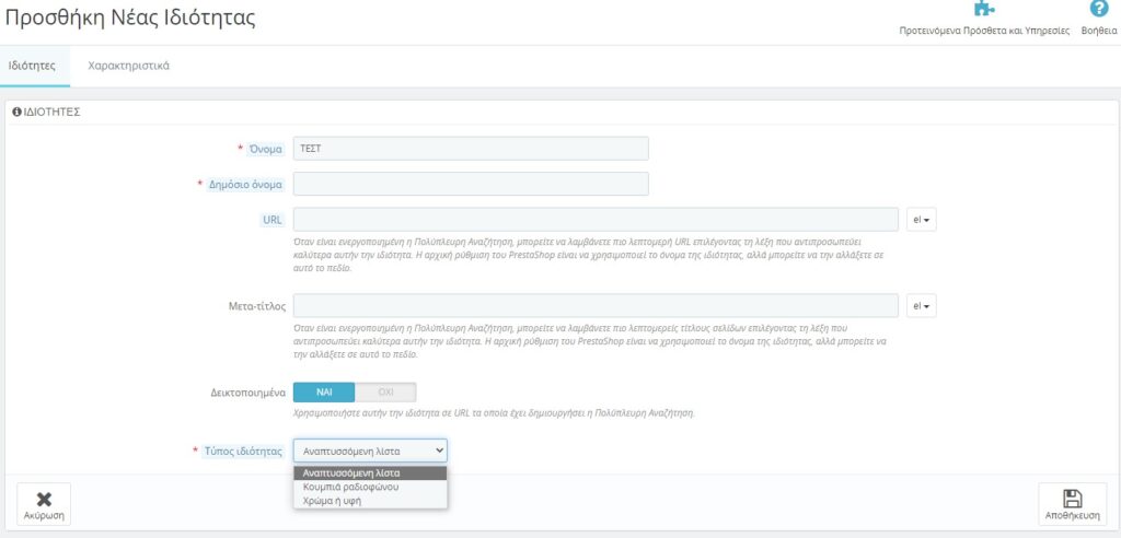 Εισάγουμε όνομα Ιδιότητας και δημόσιο όνομα