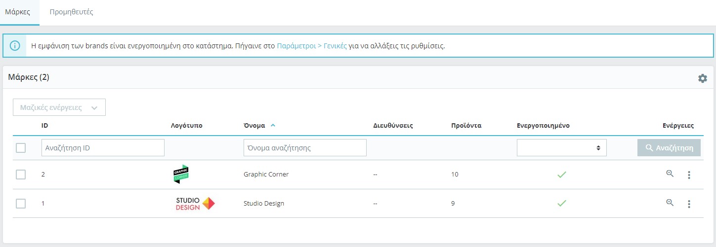 Στις Επιλογές μας έχουμε Μάρκες και Προμηθευτές