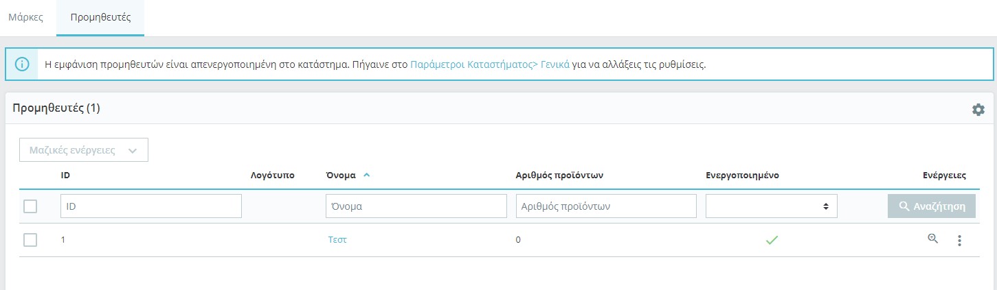 Στους προμηθευτές μας μπορούμε να προσθέσουμε τους προμηθευτές ώστε να αντιστοιχίσουμε κάποιο προϊόν και να ξέρουμε από ποιον προμηθευτή το πήραμε.