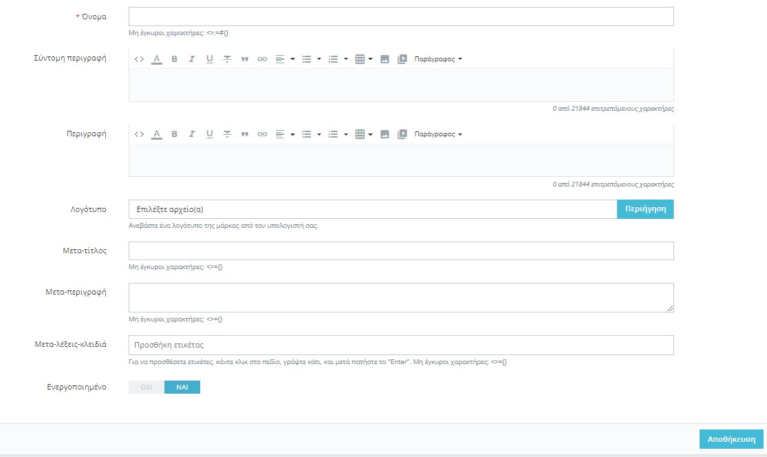 Στις Μάρκες προσθέτουμε Μάρκες όπως Dell ή Nike κλπ